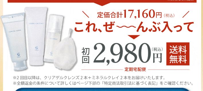 フルリクリアゲルクレンズは美容液のセットで88%OFFが最安値です。私が購入した時期にはなかったキャンペーンで羨ましいです><